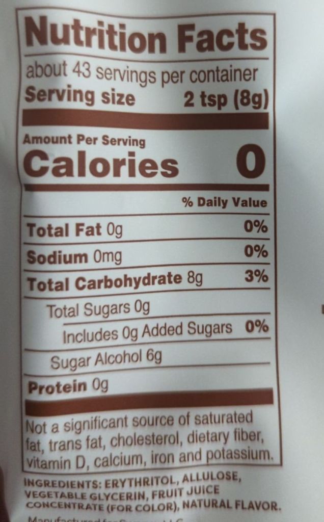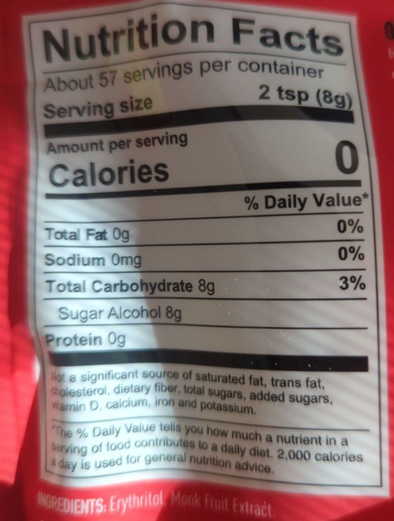 Lakanto Monk fruit Sweetener with Erythritol nutrition facts