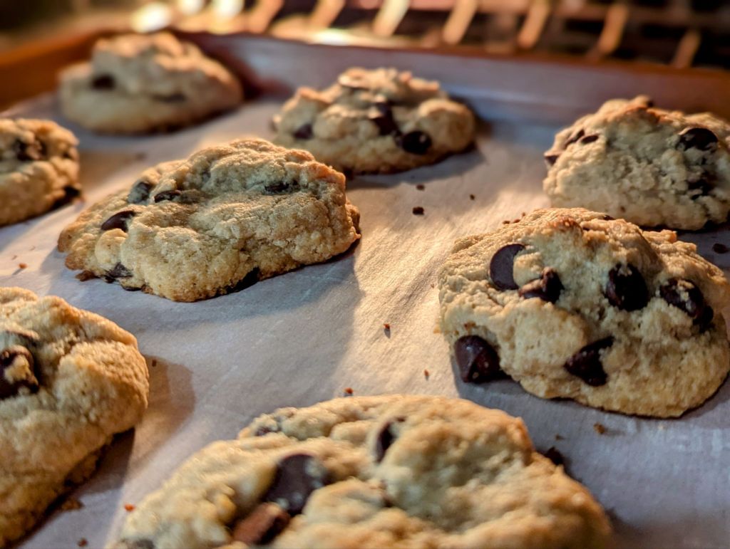 - Press and roll pieces of cookie dough into the size of golf balls. Place on cookie sheet.